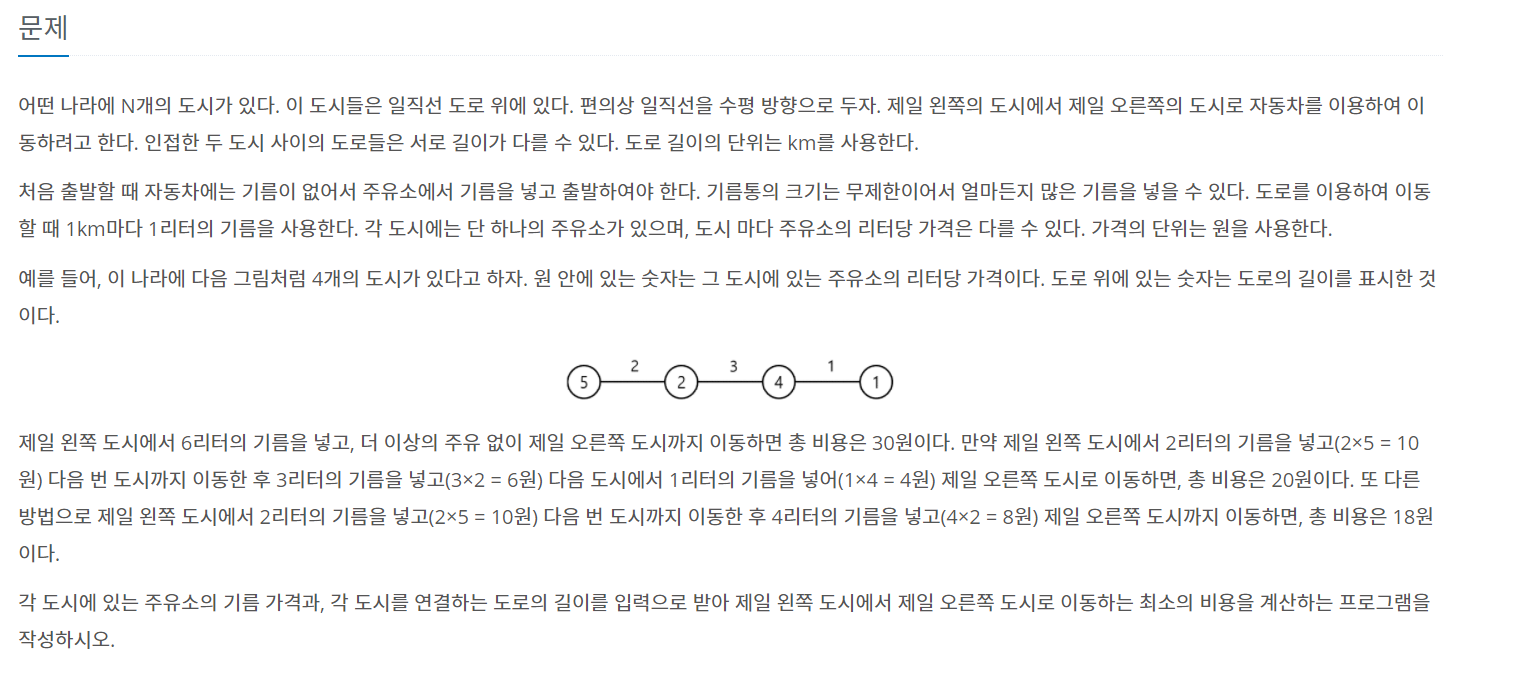 https://www.acmicpc.net/problem/13305