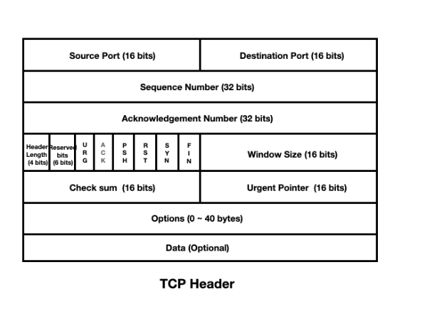 그래서 TCP 헤더에는 SYN, ACK, FIN, RST, Source Port, Dest Port, Sequence Number, Window Size, Checksum과 같은 신뢰성 보장과 흐름 제어, 혼잡 제어에 관여할 수 있는 요소들이 포함되어 있다.