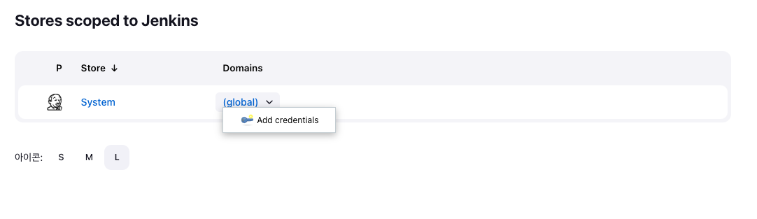 대시보드 -> 젠킨스 관리 -> Credentials 로 이동합니다.