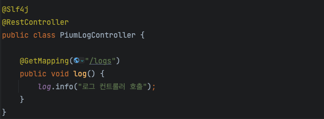롬복에서 제공해 주는 @Slf4j 어노테이션을 통해 log 객체를 사용할 수 있습니다.
