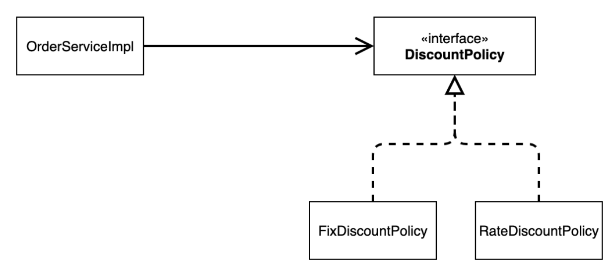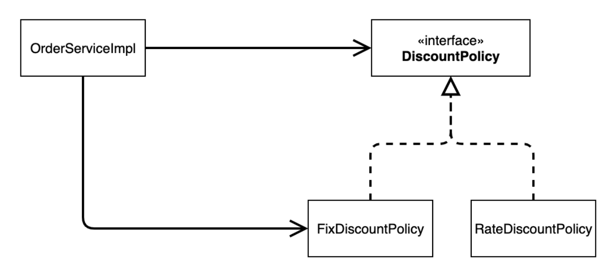 * 그래서 구현 클래스(고정, 비율)를 변경할 때, OrderServiceImpl도 같이 변경해야 된다