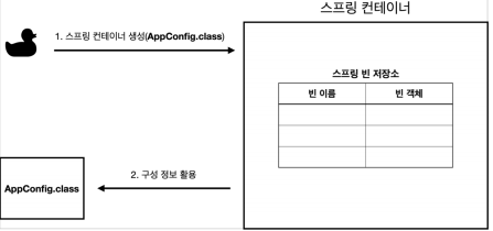 스프링 컨테이너는 파라미터로 넘어온 설정 클래스 정보를 사용해서 스프링 빈을 등록한다.
