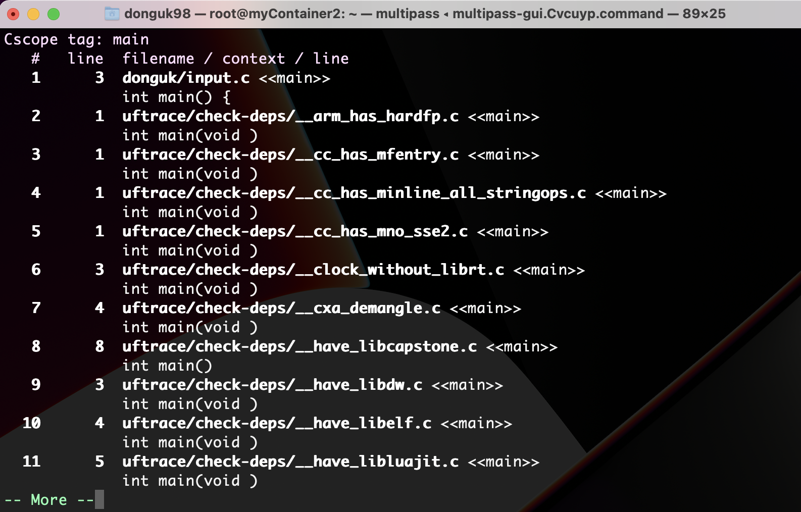 이후 cs find를 이용하여 cscope를 사용할 수 있습니다.