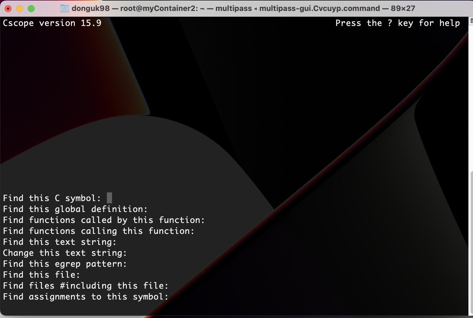cscope.out 파일이 생성되는 과정이고 command + d를 눌러 빠져나옵니다.