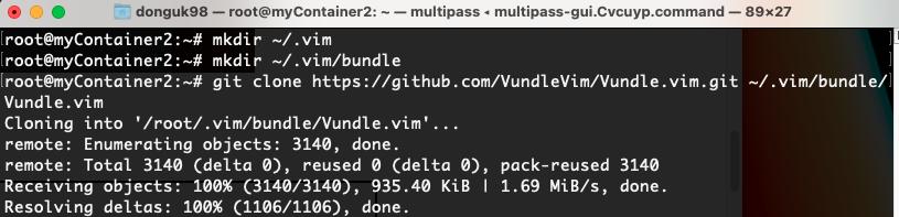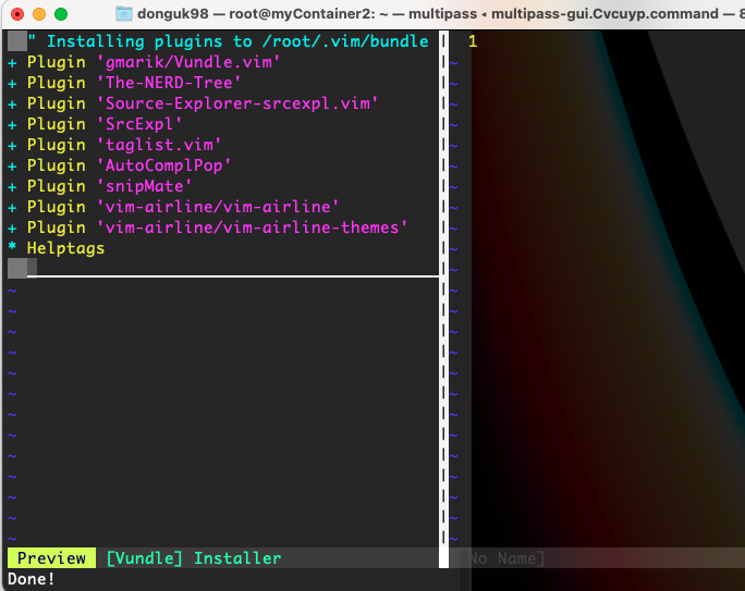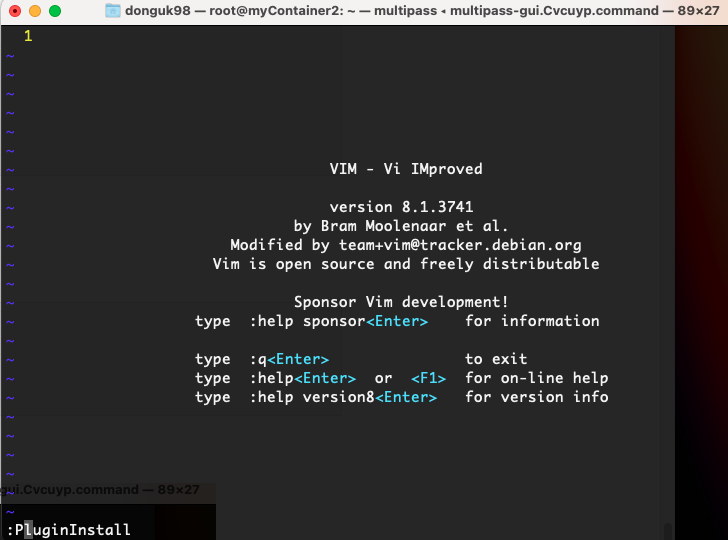 터미널에서 vim을 입력한 후 :PluginInstall를 입력하면 모든 Plugin 설치 완료