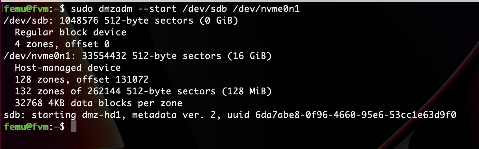 sudo dmzadm --start /dev/sdb /dev/nvme0n1