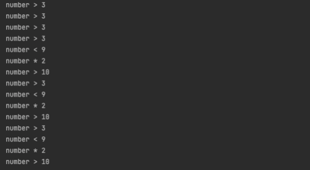 .filter(number -> number > 3) // 1, 2, 3, 4, 5, 6, 7, 8, 9, 10