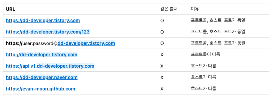 https://dd-developer.tistory.com/ 와 동일 출처 판단