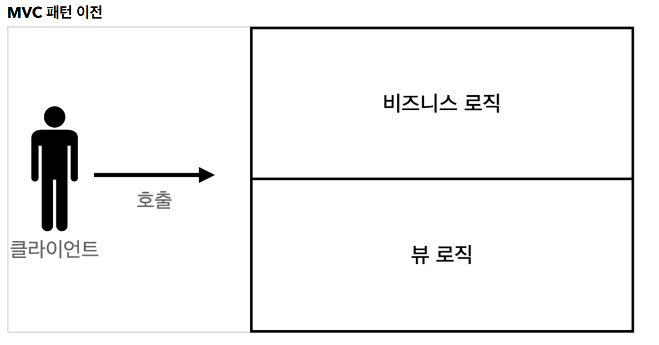 MVC 패턴은 앞에서 다룬 서블릿이나 JSP로 처리하던 것을 컨트롤러와 뷰라는 영역으로 서로 나눈 것을 말한다. 웹 어플리케이션은 보통 이러한 MVC 패턴을 사용한다.