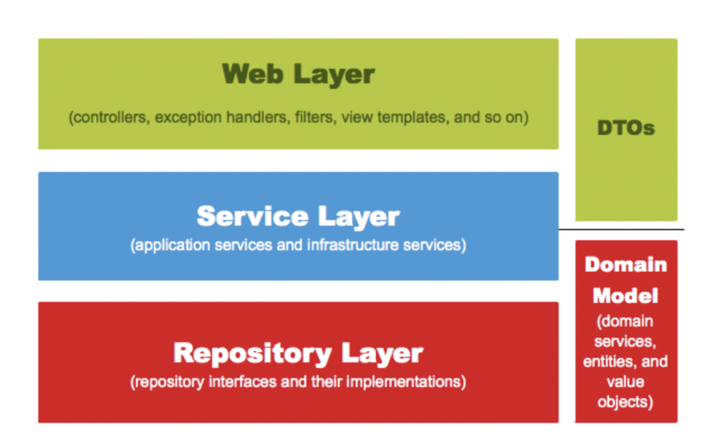 프로젝트를 할 때 프로젝트의 패키지를 나누는 것은 중요합니다. 패키지 마다 구분된 역할을 하도록 설계하여 모듈마다 결합도는 낮추고 응집도를 높여 모듈은 각자의 역할만 해야되기 때문입니다. 스프링 웹 계층에는 Web, Service, Repository, DTOs, Domain Model 5가지 계층이 있습니다. 각 계층의 역할에 대해서 알아보겠습니다.