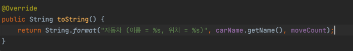 - System.out.println(car)를 할 때